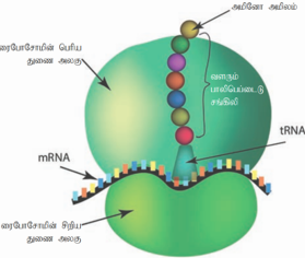 RNA உற்பத்தி, புரதச்சேர்க்கை | சைட்டோபிளாசத்தில் நடைபெறுகிறது. | யூகேரியோட்டுகளை ஒத்துள்ளன. | RNA உட்கருவினுள் உருவாகின்றது புரதச்சேர்கை சைட்டோபிளாசத்தினுள் நடைபெறுகிறது. |