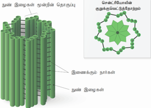 விலங்கு செல்லின் சென்ட்ரியோல்களிலிருந்து நுண் இழைகள் தோன்றிச் செல்லினுள் எதிரெதிர் துருவங்கள் நோக்கி இடப்பெயர்ச்சி அடைகின்றன. இந்த நுண் இழைகளுக்கு நட்சத்திர இழைகள் என்று பெயர். தாவரச் செல்களில் நட்சத்திர இழைகள் தோன்றுவதில்லை.