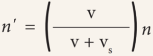 - ஒலி மூலத்தின் அதிர்வெண் ‘n’ எனவும், கேட்குநரால் உணரப்படும் ஒலியின் அதிர்வெண் n’ எனவும் கொள்வோம்.