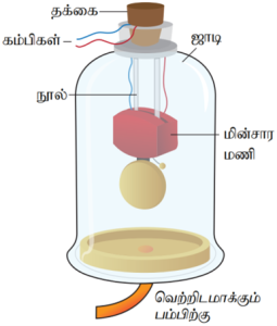 - ஜாடியானது ஒரு வெற்றிடமாக்கும் பம்புடன் இணைக்கப்பட்டுள்ளது.