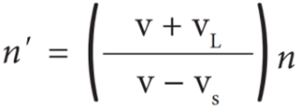 டாப்ளர் விளைவினால் உருவாகும் தோற்ற அதிர்வெண்ணிற்கானச் சமன்பாடுகள்: