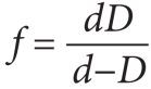 தூரப் பார்வை குறைபாடு உடைய ஒரு மனிதரால் d என்ற தொலைவிற்கு அப்பால் உள்ள பொருள்களை மட்டுமே காணமுடிகிறது எனக் கொள்வோம். அவர் dக்கு குறைவாக உள்ள D என்ற தொலைவில் அமைந்த பொருள்களையும் காணவிரும்பினால், பயன்படுத்தப்பட வேண்டிய குவி லென்சின் குவிய தூரம்.
