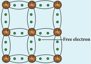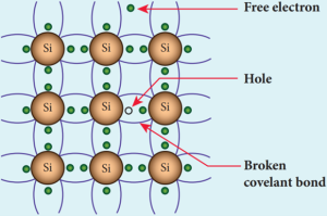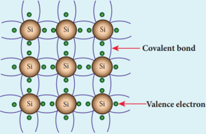 - Each Silicon atom has four electrons in the outermost orbit and is covalently bonded with the neighbouring atoms to form the lattice.