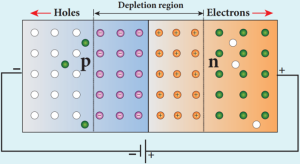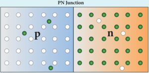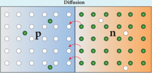 - Since the n-region has a high electron concentration and the p-region a high whole concentration, electrons diffuse from the n-side to the p-side.
