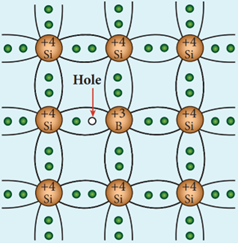 - Here, a trivalent atom from group III elements such as Boron, Aluminium, Gallium and Indium is added to the Germanium or Silicon substrate.