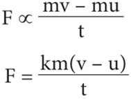 - Let, ‘m’ be the mass of a moving body, moving along a straight line with an initial speed ‘u’ After a time interval of ‘t’, the velocity of the body changes to ‘v’ due to the impact of an unbalanced external force F.