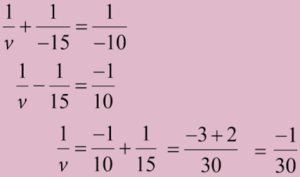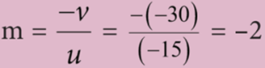 Thus, image distance, v = –30 cm (negative sign indicates that the image is on the left side of the mirror).