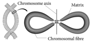 - Diplotene – Synaptonemal complex disassembled and dissolves. The homologous chromosomes remain attached at one or more points where crossing over has taken place. These points of attachment where ‘X’ shaped structures occur at the sites of crossing over is called Chiasmata. Chiasmata are chromatin structures at sites where recombination has been taken place. They are specialised chromosomal structures that hold the homologous chromosomes together. Sister chromatids remain closely associated whereas the homologous chromosomes tend to separate from each other but are held together by chiasmata. This substage may last for days or years depending on the sex and organism.