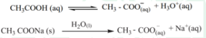 எனினும், சேர்க்கப்பட்ட சோடியம் அசிட்டேட் உப்பானது முழுமையாக பிரிகையடைந்து Na+ மற்றும் CH3 COO– அயனிகளை உருவாக்குகின்றன.![]()