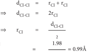 எடுத்துக்காட்டு: சோதனை மூலம் கண்டறியப்பட்ட Cl2 மூலக்கூறின் அணுக்கருயிடை தூரம், 1.98 Å.