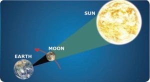 - During a total solar eclipse, the moon’s shadow is short enough to cover the whole sun.