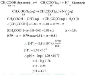 CH3COOH ன் Ka மதிப்பு 1.8 X 10-5